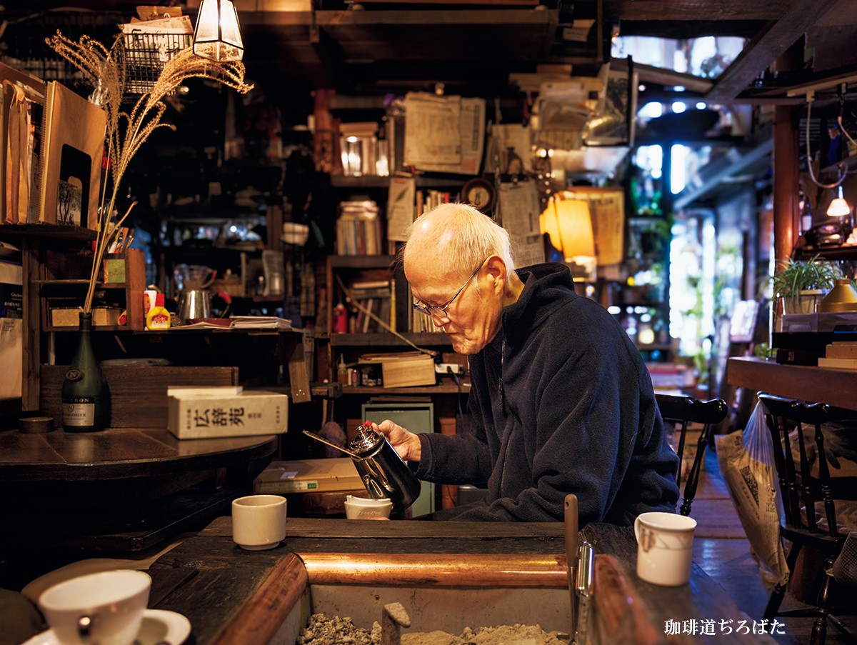 それまでにも何種類もの珈琲をぢろばたで飲み、さまざまな魅力を味わっていたのだが、「タクタクタク……と点滴のように湯を注」いで抽出するその一杯を口にしたとき、「うまい……」と言ったきり、言葉が途切れた。